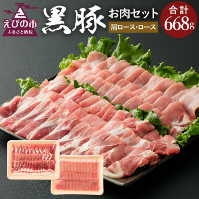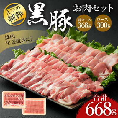【ふるさと納税】えびの純粋 黒豚お肉セット (肩ロース368g・ロース300g) 合計668g 焼肉 豚肉 お肉 ギフト 贈り物 お礼 お祝い 高級 宮崎県えびの市産 冷凍 送料無料