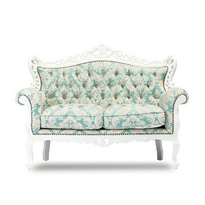 Symphony シンフォニー ソファ ソファー 2人掛けソファ 二人 2人がけ 2人用 ロココ調家具 アンティーク ソファ アンティーク調 コンパクトソファ ホワイトxブルーダマスク 布地 白家具 猫脚 高級感 コンパクト クラシック おしゃれ ロマンチック 1006-2-SH-18F66B