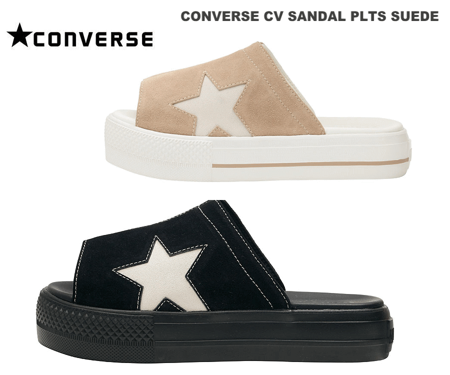 コンバース CV 厚底 サンダル PLTS スエード 低反発 レディース サンダル シャワー サマースニーカー ベージュ ブラック 黒 靴 女性 かわいい おしゃれ ワンスター 母の日 オフィス履き 普段履き プレゼント ライフスタイル 35500260 35500261 23cm 24cm 25.5cm