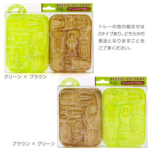 商品内容 『カブトムシ&クワガタムシ』の形のアイストレー 種類(10種):ヘラクレスオオカブト、コーカサスオオカブト、ゴホンヅノカブト、カブトムシ、サビイロカブト、ギラファノコギリクワガタ、オウゴンオニクワガタ、オオクワガタ、ニジイロクワガタ、ヨーロッパミヤマクワガタ 商品特性 電子レンジ、食洗機OK 耐熱温度230℃、耐冷温度ー20℃ 色 グリーン × ブラウン 【ご注意】トレーの色の組合せは2パターンありますが、どちらかの発送となります。