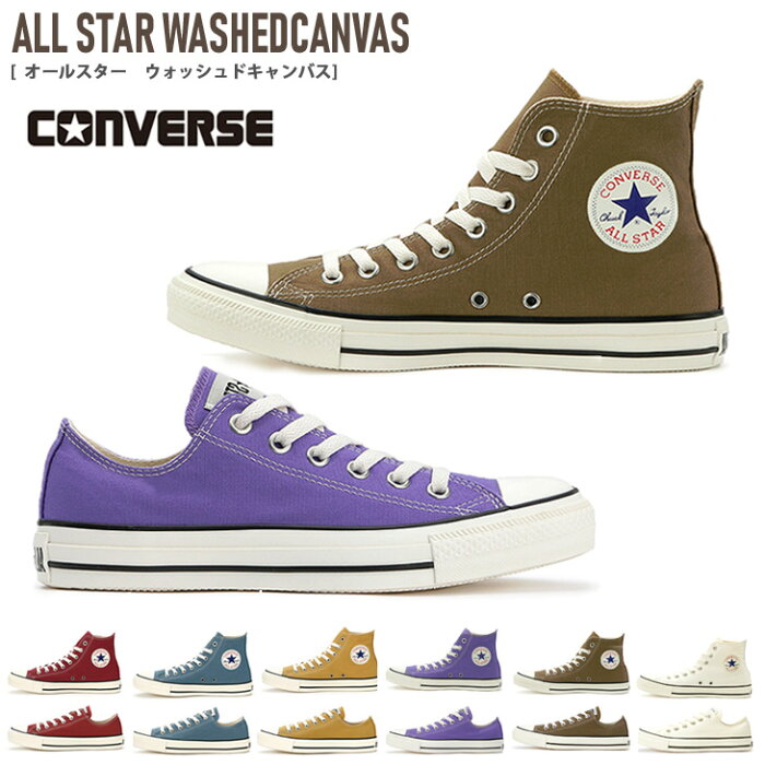 2018年秋冬新作! コンバース オールスター ウォッシュドキャンバス HI OX CONVERSE ALL STAR WASHEDCANVAS スニーカー レディース ゴールド イエロー ブルー レッド パープル ブラウン ホワイト 22.5 24.5 ハイカット ローカット キャンバス 散歩